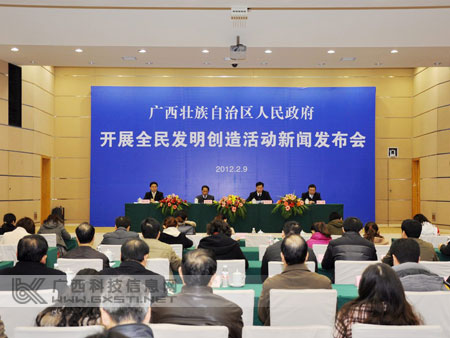 为落实《广西壮族自治区人民政府关于在全区开展发明创造活动的决定》(以下简称《决定》),2月9日,自治区人民政府在南宁召开了开展全民发明创造活动新闻发布会。自治区科学技术厅副厅长、自治区知识产权局局长李昌华介绍了组织开展全民发明创造活动的背景、重要意义、重点任务和主要措施。自治区工信委、科技厅、财政厅、知识产权局等有关部门负责人回答了记者提问。会议由自治区人民政府副秘书长蒋家柏主持。