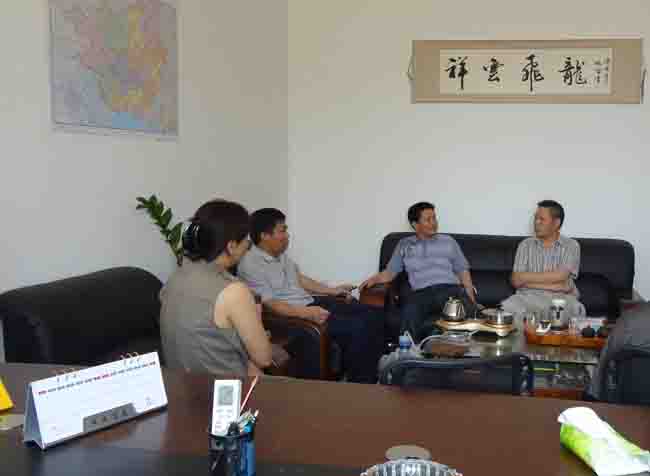 图为马所长和科技局领导在广西钦州祥云飞龙有色金属有限责任公司刘辉副经理进行交流