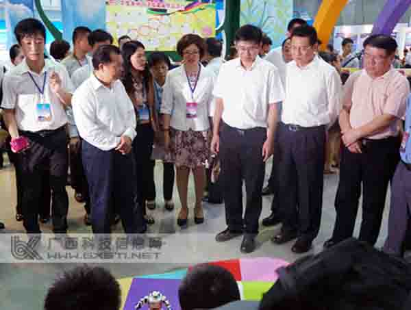 自治区副主席蓝天立等领导参观中小学生发明创造展区