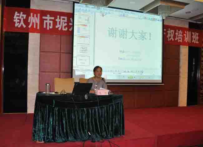 培训班由钦州市科技局副局长黄岳联主持,黄副局长在介绍了此次的参会人员后,由自治区知识产权局法律事务处调研员祖晓光以“知识产权及专利申请与保护”为授课主题,开始进行授课,最后由我公司经理马兰女士针对坭兴陶特色产业中发明、实用新型和外观设计三种类型的专利在申请过程中出现的问题做了深入的分析,并对外观设计产品的丰富化做了拓展性的讲解。