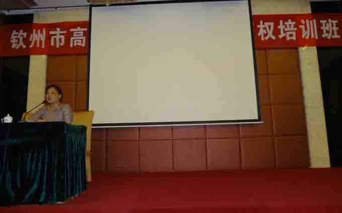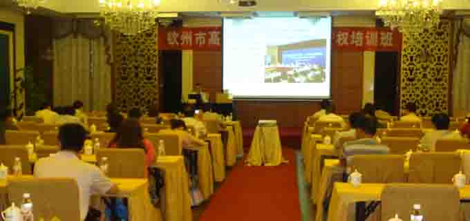 培训班由钦州市科技局副局长黄岳联主持,黄副局长在介绍了此次的参会人员后,由自治区知识产权局法律事务处调研员祖晓光以“知识产权与科技创新”为授课主题,开始进行授课,最后由我公司经理马兰女士针对高新技术企业在申请专利过程中出现的问题做了深入的分析,同时马兰女士在企业如何运用、保护企业的自主知识产权的问题给出了精彩的解答和中肯的建议。